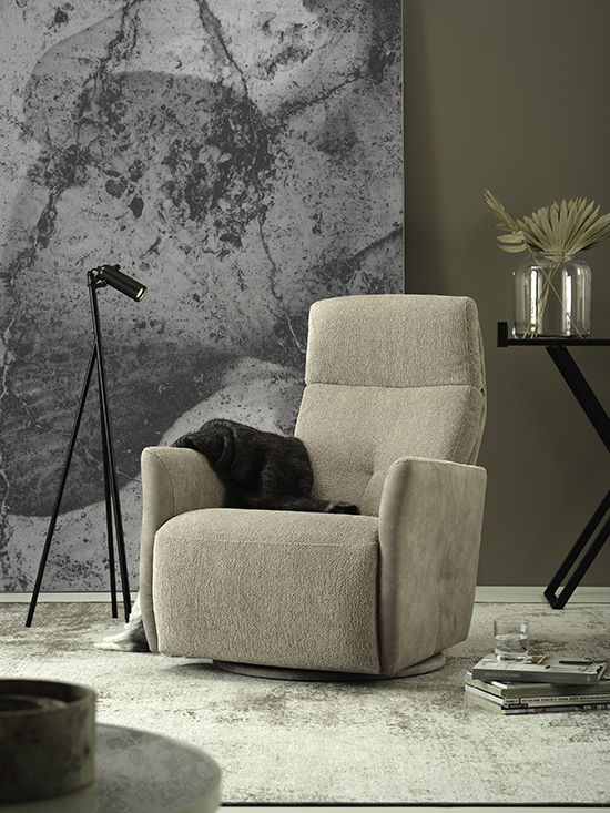 Le dossier, garni d’une mousse de qualité, assure un excellent maintien du dos, tandis que les accoudoirs généreusement rembourrés apportent un confort supplémentaire et une sensation de douceur. L’ensemble est complété par une ouate de polyester thermofixée et recyclable, garantissant une finition soignée et un confort agréable.