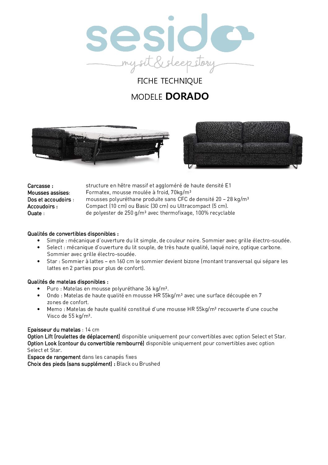 Le DORADO propose plusieurs mécanismes de convertible de haute qualité, permettant un couchage confortable et pratique :