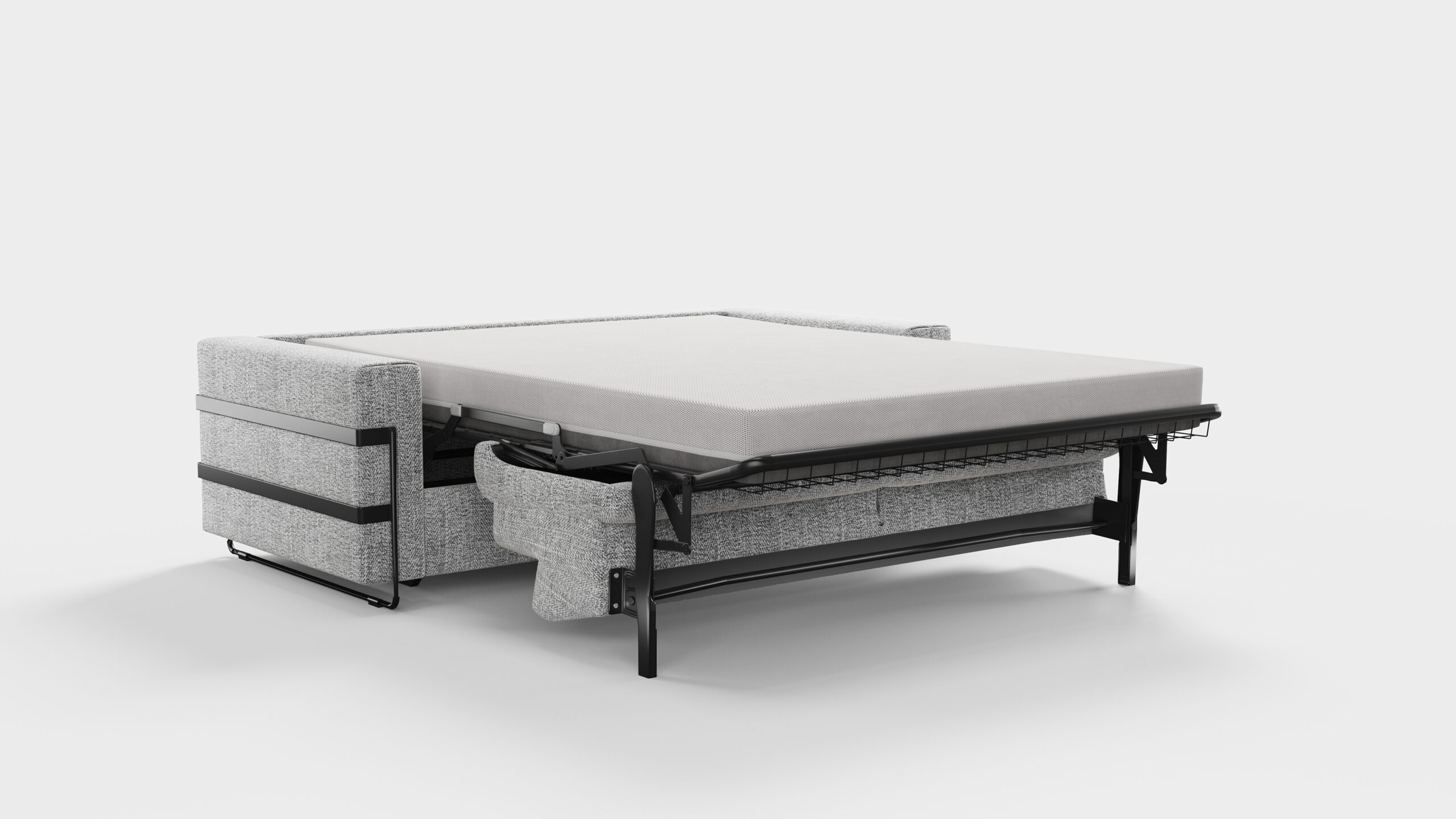 Select : ouverture du lit souple de très haute qualité, finition laquée noire optique carbone, avec sommier à grille électro-soudée.