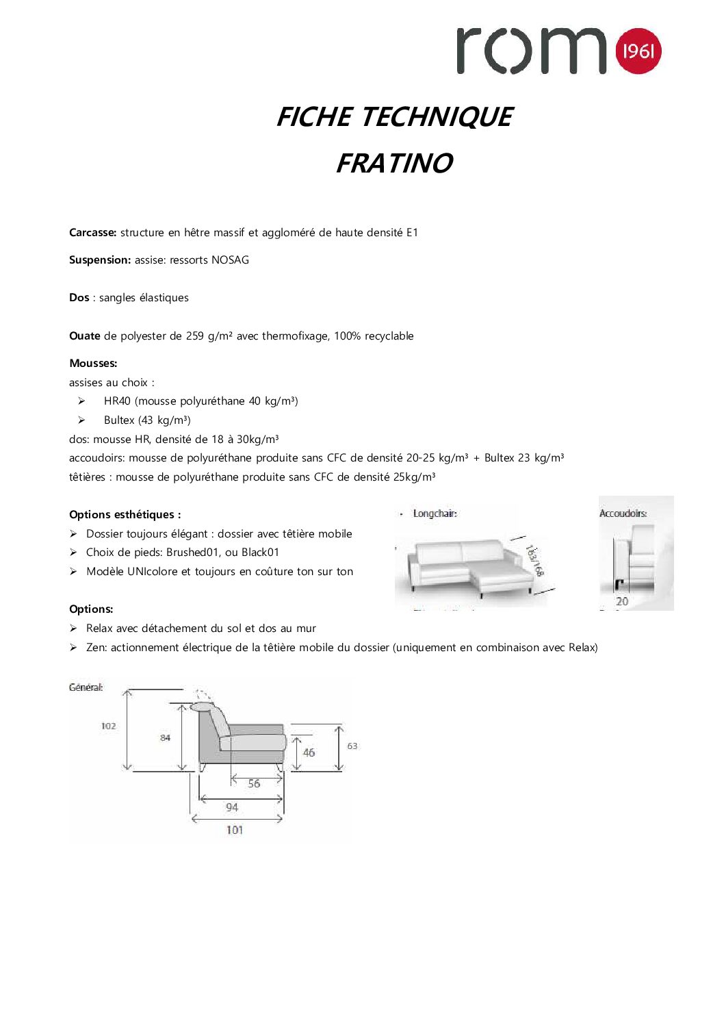 Points forts du canapé FRATINO