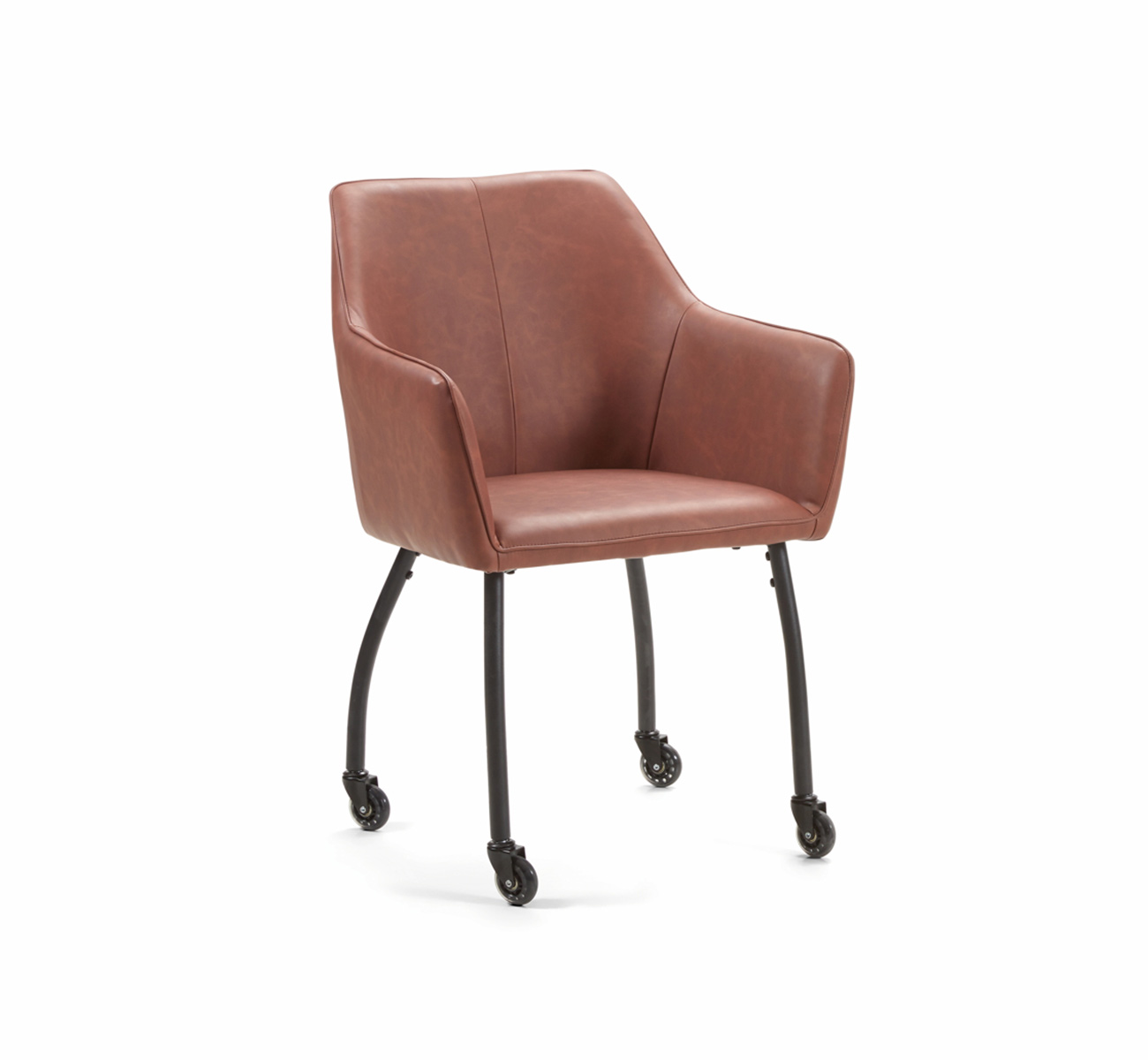 Les beaux pieds fins en métal noir complètent à merveille le design de la chaise. Ses pieds sont complétés par des roulettes pour faciliter le déplacement et pour pouvoir aménager votre intérieur en toute simplicité.