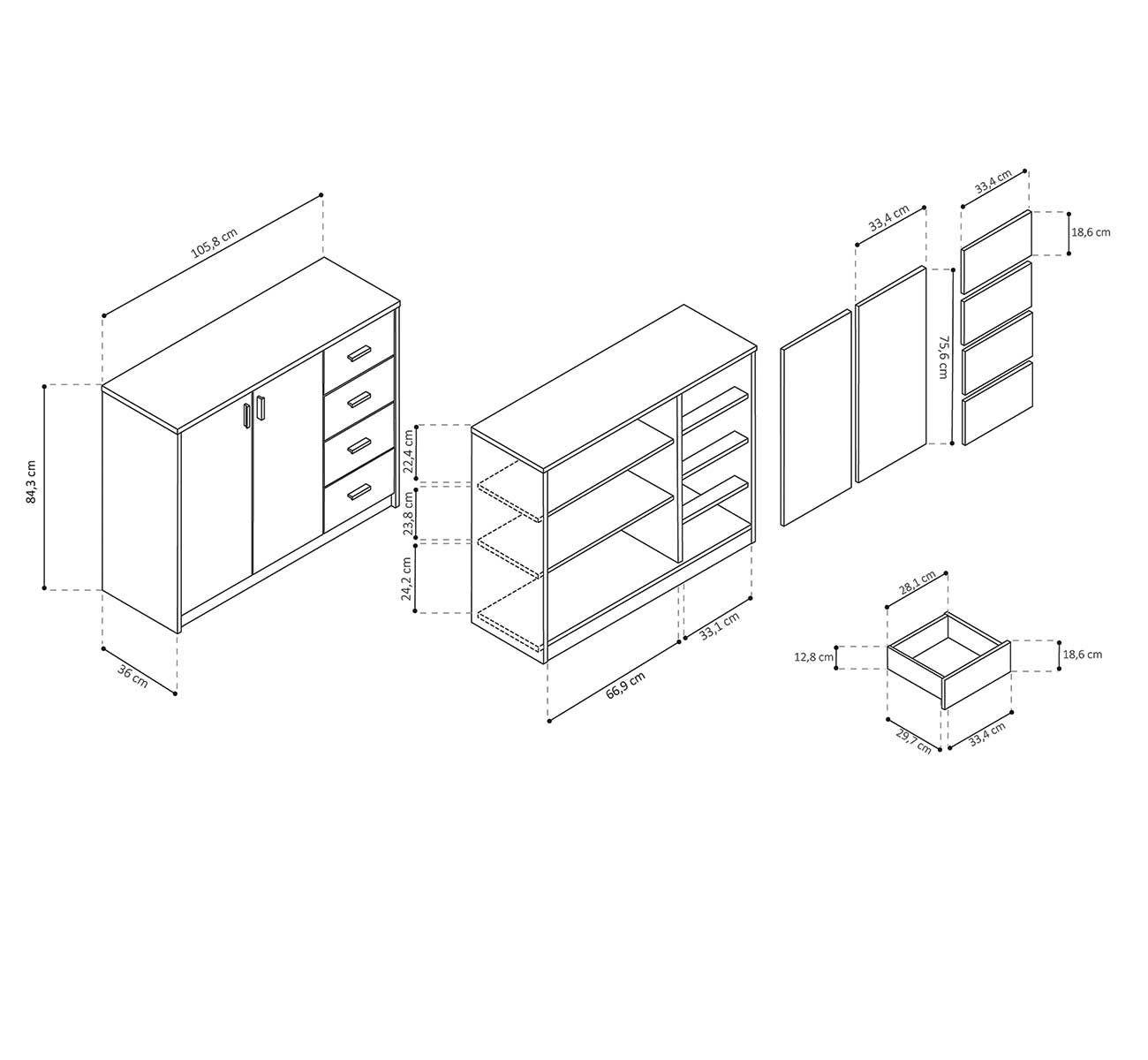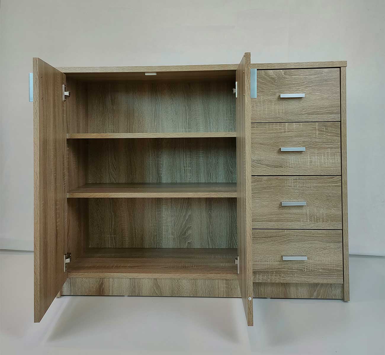 Les 2 portes et les 4 tiroirs offrent un espace de rangement suffisant pour vos vêtements, vos chaussures ou tout autre objet personnel que vous souhaitez garder à portée de main.