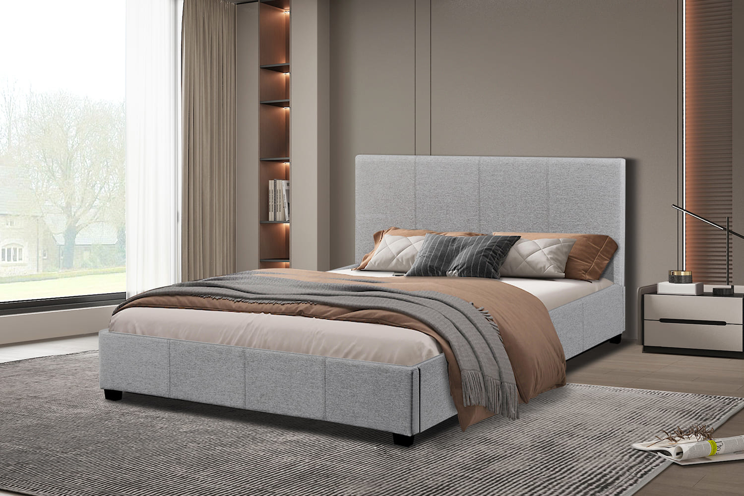 de tissu gris ou de tissu beige, y compris sa tête de lit droite assortie,