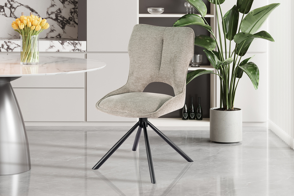 Alliez élégance, confort et responsabilité avec la chaise Mori, un modèle pivotant au style moderne, conçu pour sublimer aussi bien une salle à manger qu’un espace de travail.