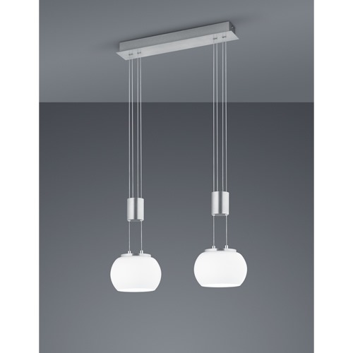 Grâce à la conception de couleur en nickel mat avec des abat-jour en verre blanc, le luminaire apporte des accents modernes et peut être combiné avec les meubles existants.
