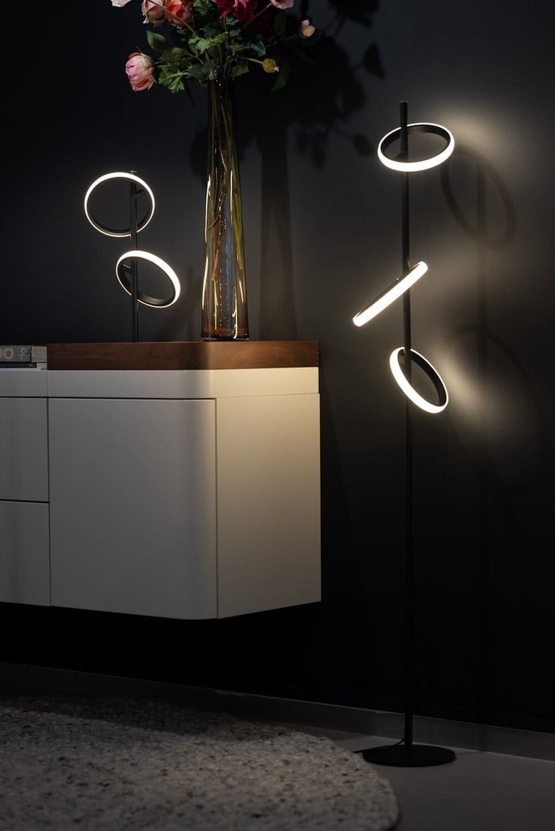 Ses cercles lumineux disposés verticalement créent un effet visuel saisissant et diffusent une lumière douce et agréable dans toute la pièce.