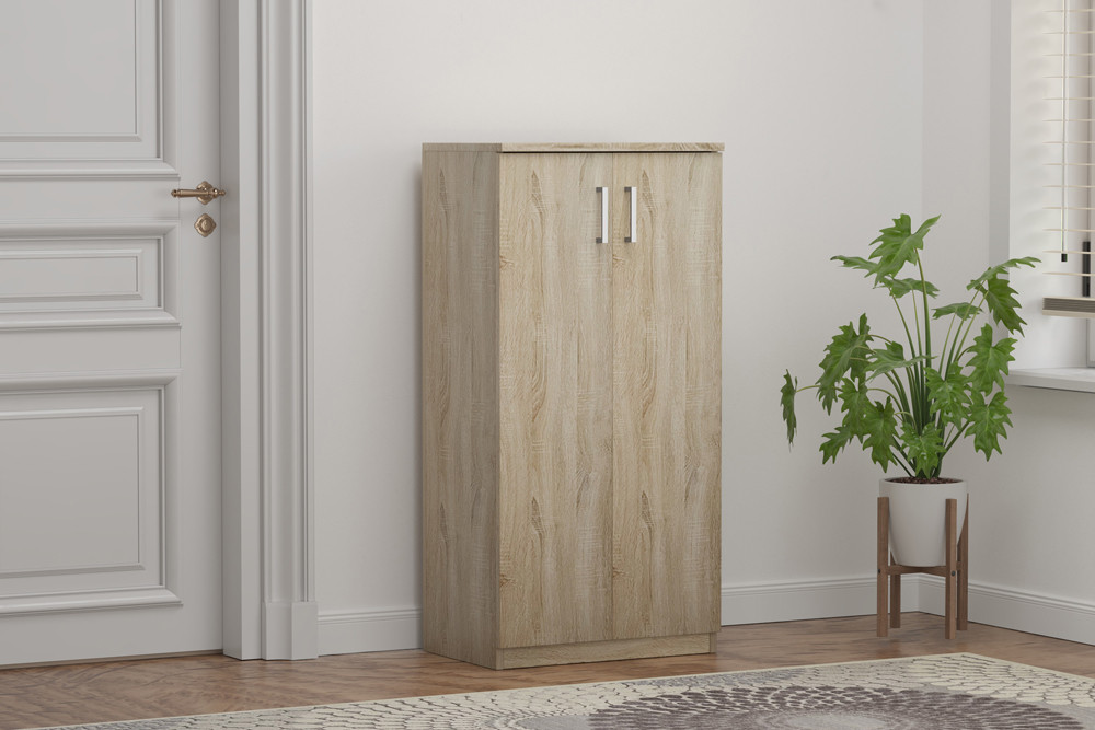 Rangement chaussures ‘Maurice’ – 2 portes – Décor Sonoma – H122 x L60 x P37 cm