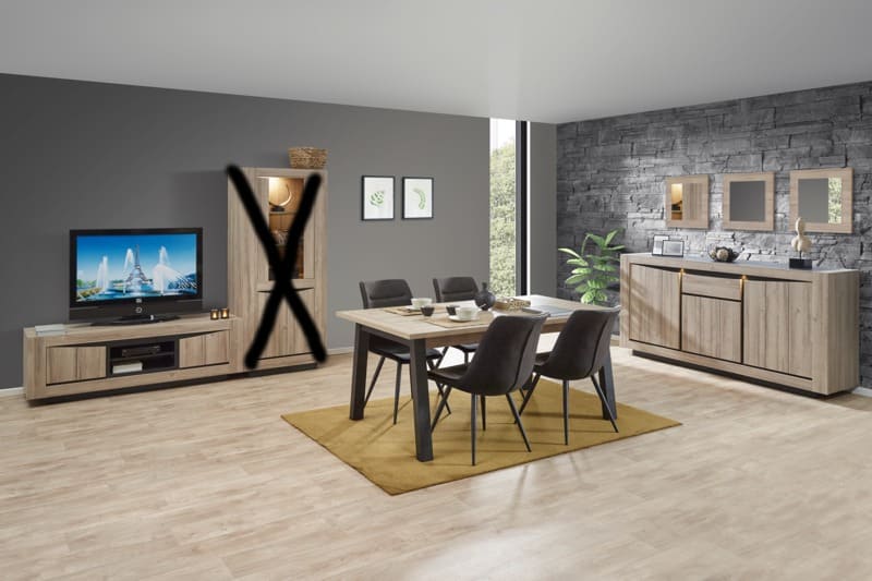 Les meubles de la collection sont conçus pour allier style et confort d’utilisation. Le buffet et la vitrine sont équipés d’un système LED intégré qui offre un éclairage indirect subtil, idéal pour créer une ambiance chaleureuse dans la pièce.