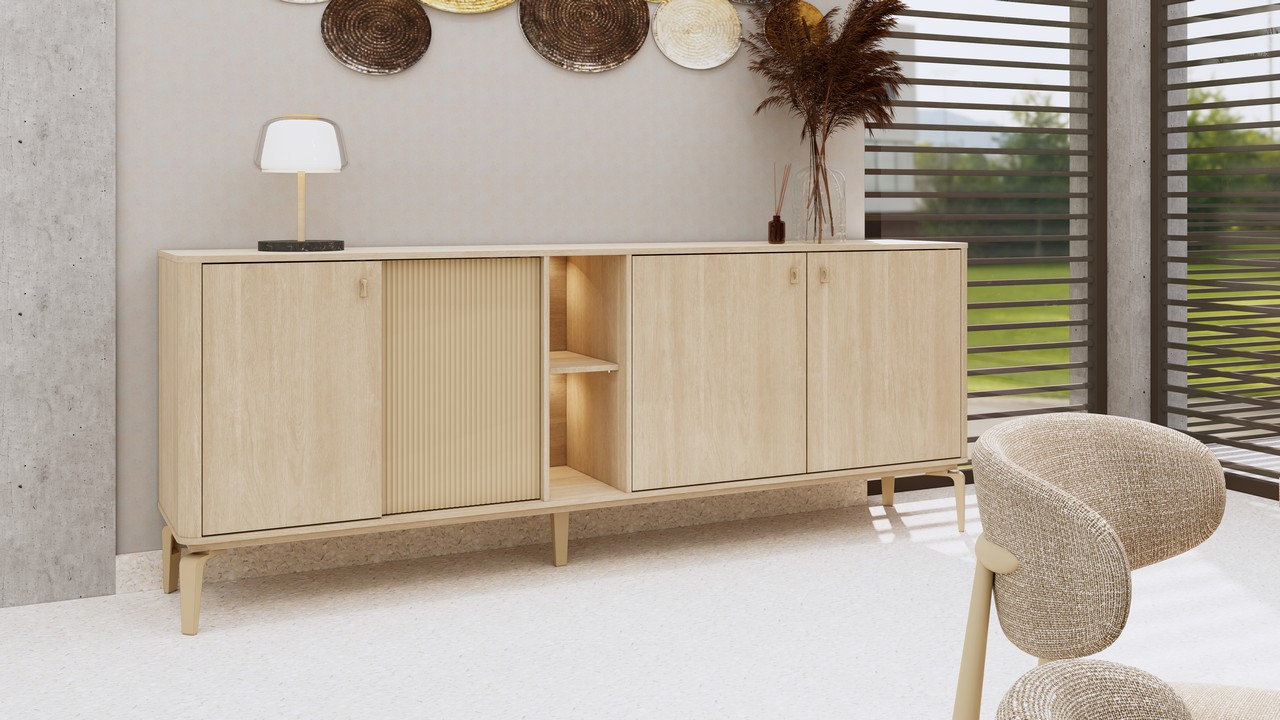 • Bahut moyen : 210 x 90 x 45 cm — idéal pour les pièces de taille moyenne.