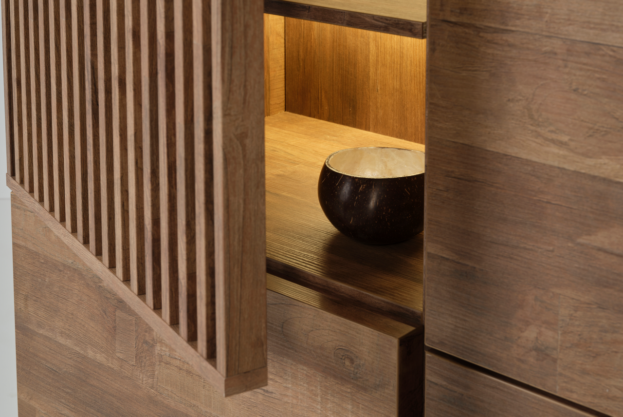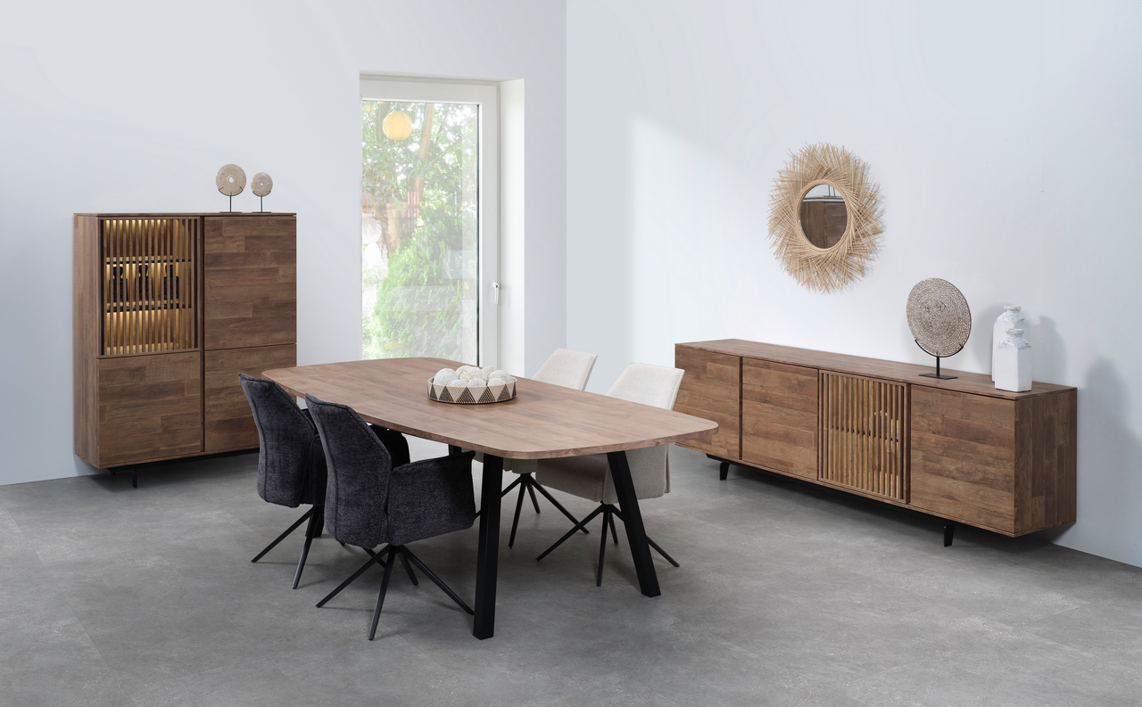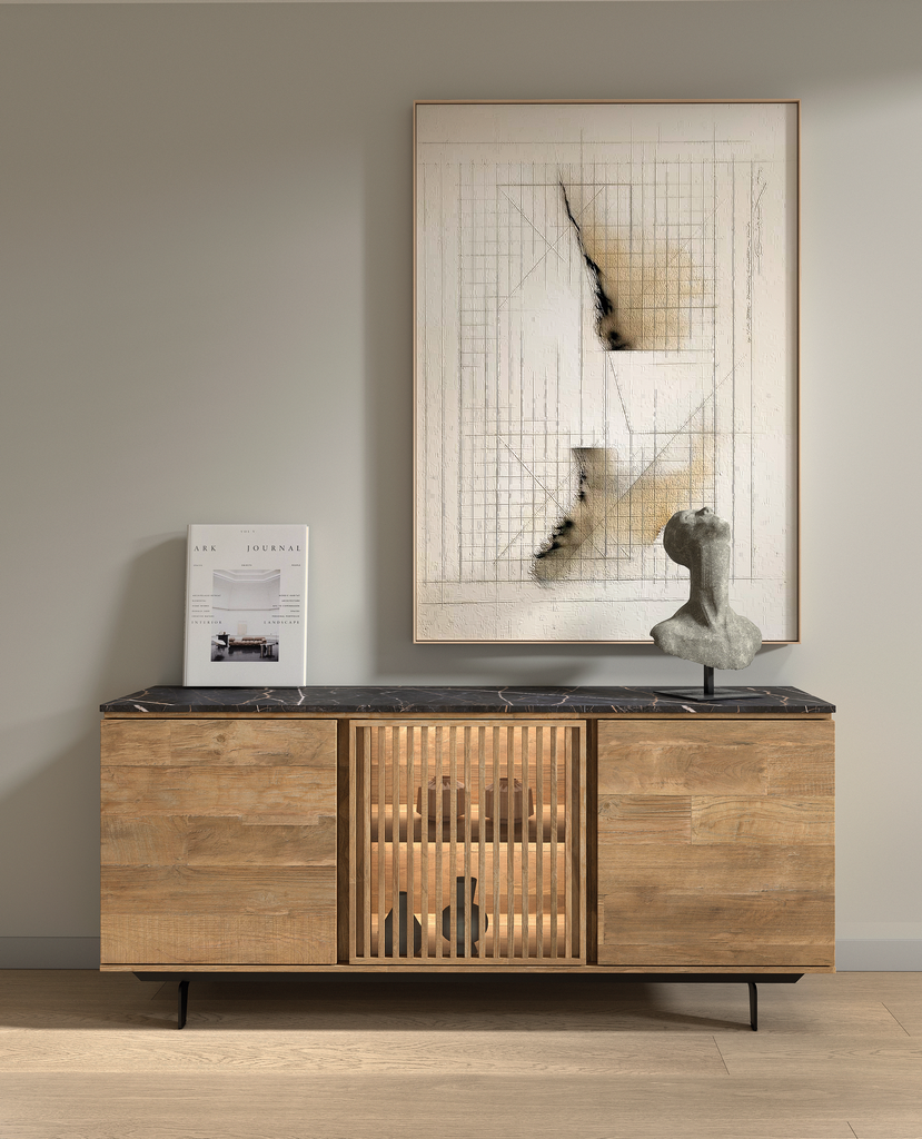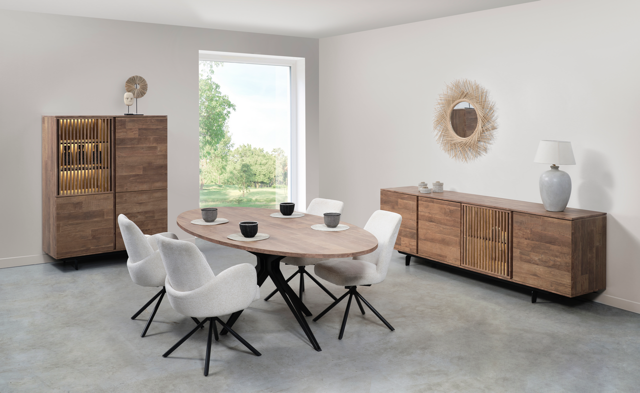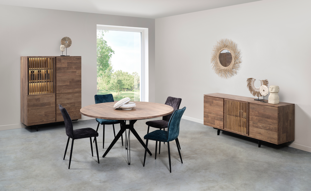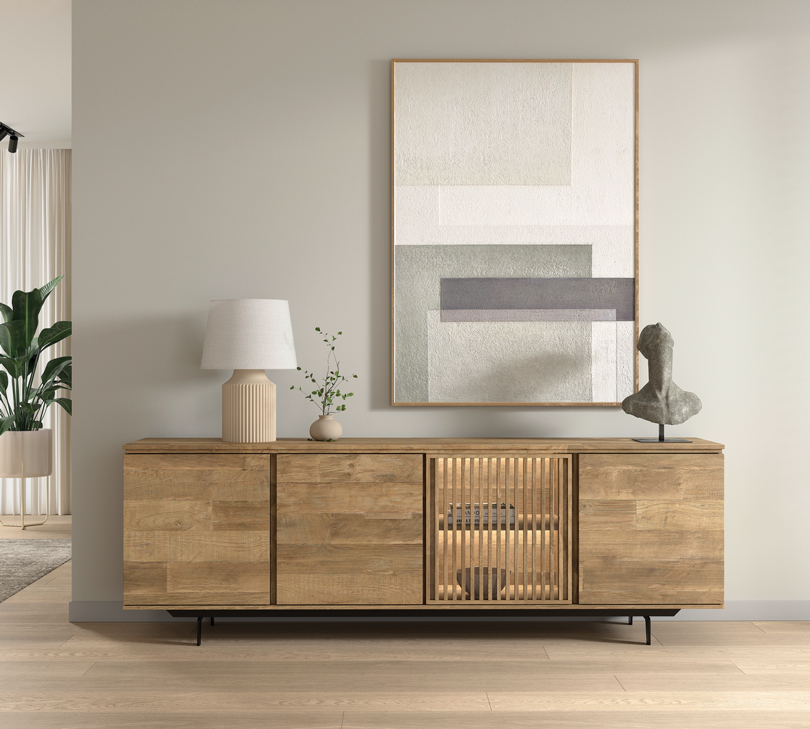 Buffets : Disponibles en plusieurs tailles – Extra-Large (244 × 81 × 50 cm), Large (215 × 81 × 50 cm), Moyen (184 × 81 × 50 cm) et Compact (163 × 81 × 50 cm) – ces buffets vous permettent d’organiser vaisselle, nappes et objets déco tout en apportant une touche contemporaine à votre salle à manger.