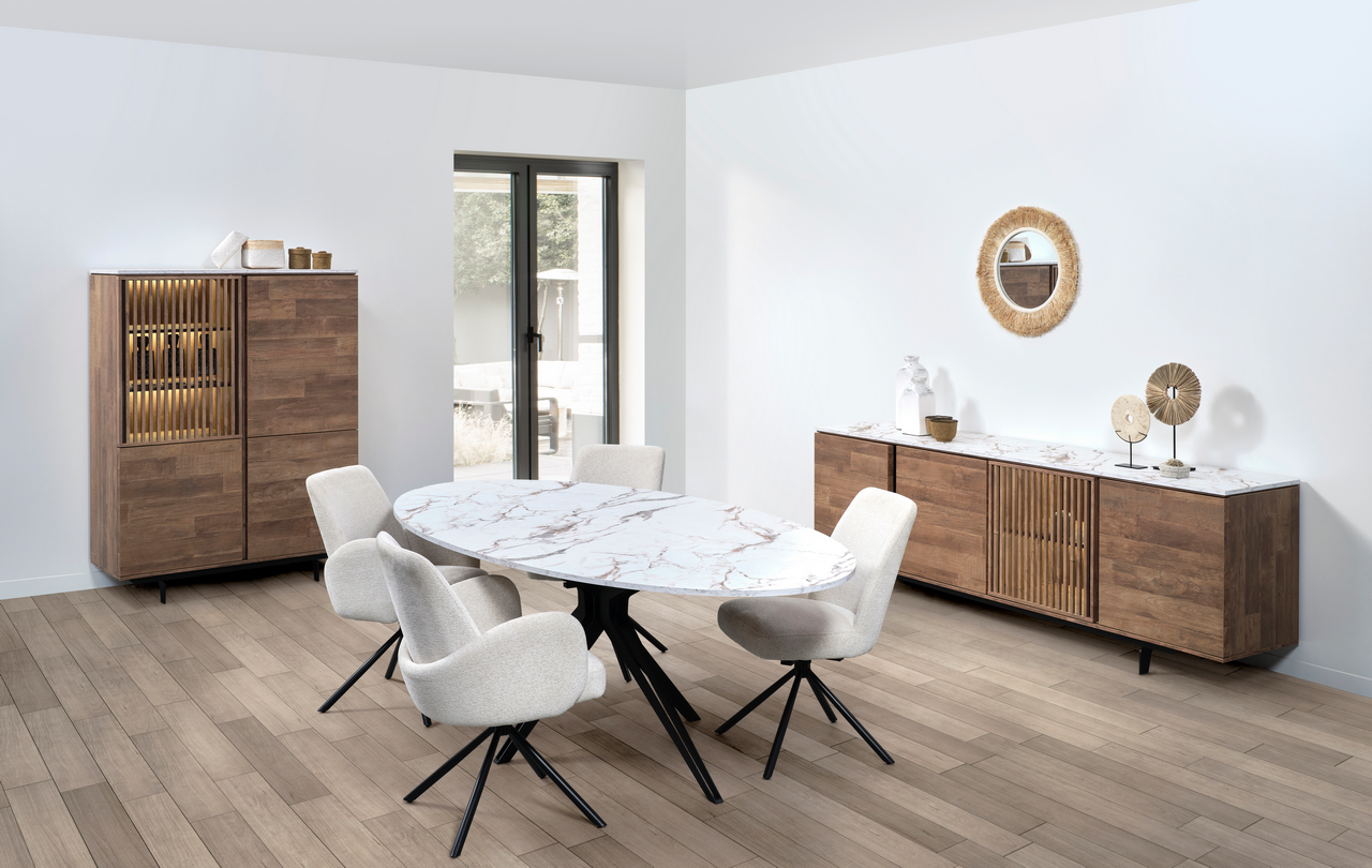 Avec la salle à manger Slato, profitez d’un mobilier harmonieux, pratique et esthétique, pensé pour durer et sublimer votre intérieur.