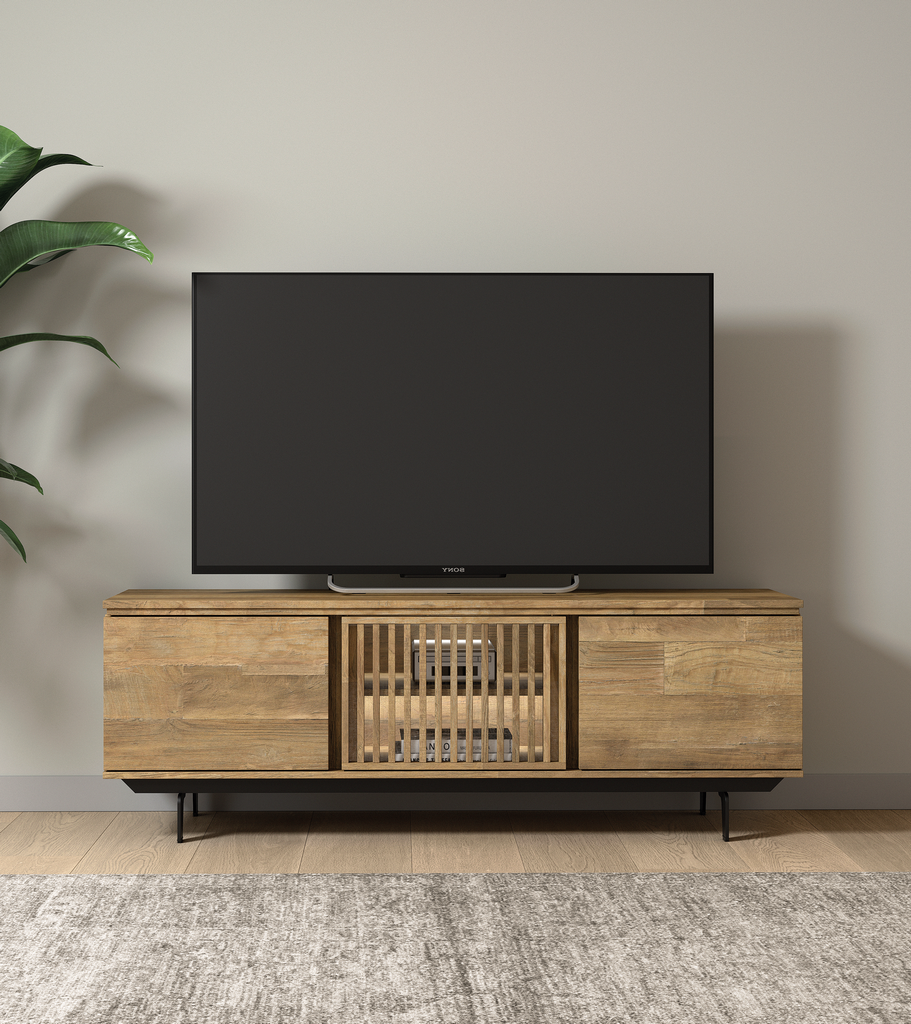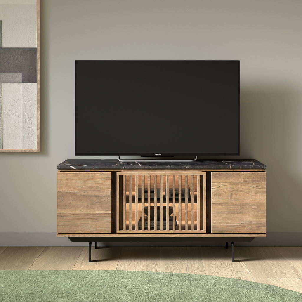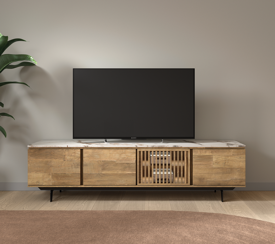 Meubles TV : Pour compléter votre espace, la gamme inclut des meubles TV Extra-Large (215 × 56 × 50 cm), Large (163 × 56 × 50 cm) et Compact (122 × 56 × 50 cm), parfaits pour accueillir votre télévision et vos appareils multimédia avec style.