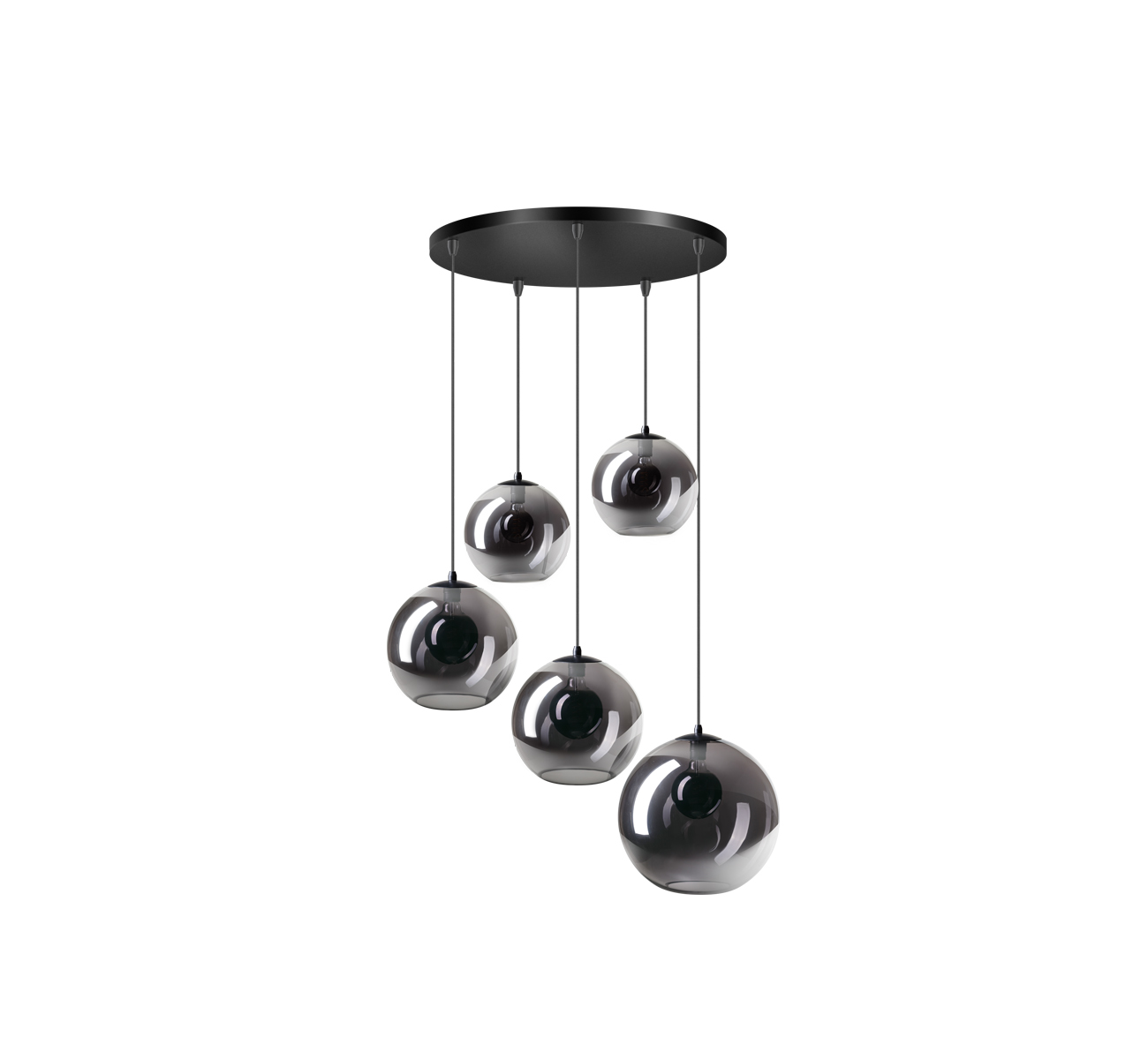 La suspension ORB est composée des sphères en verre fumé.