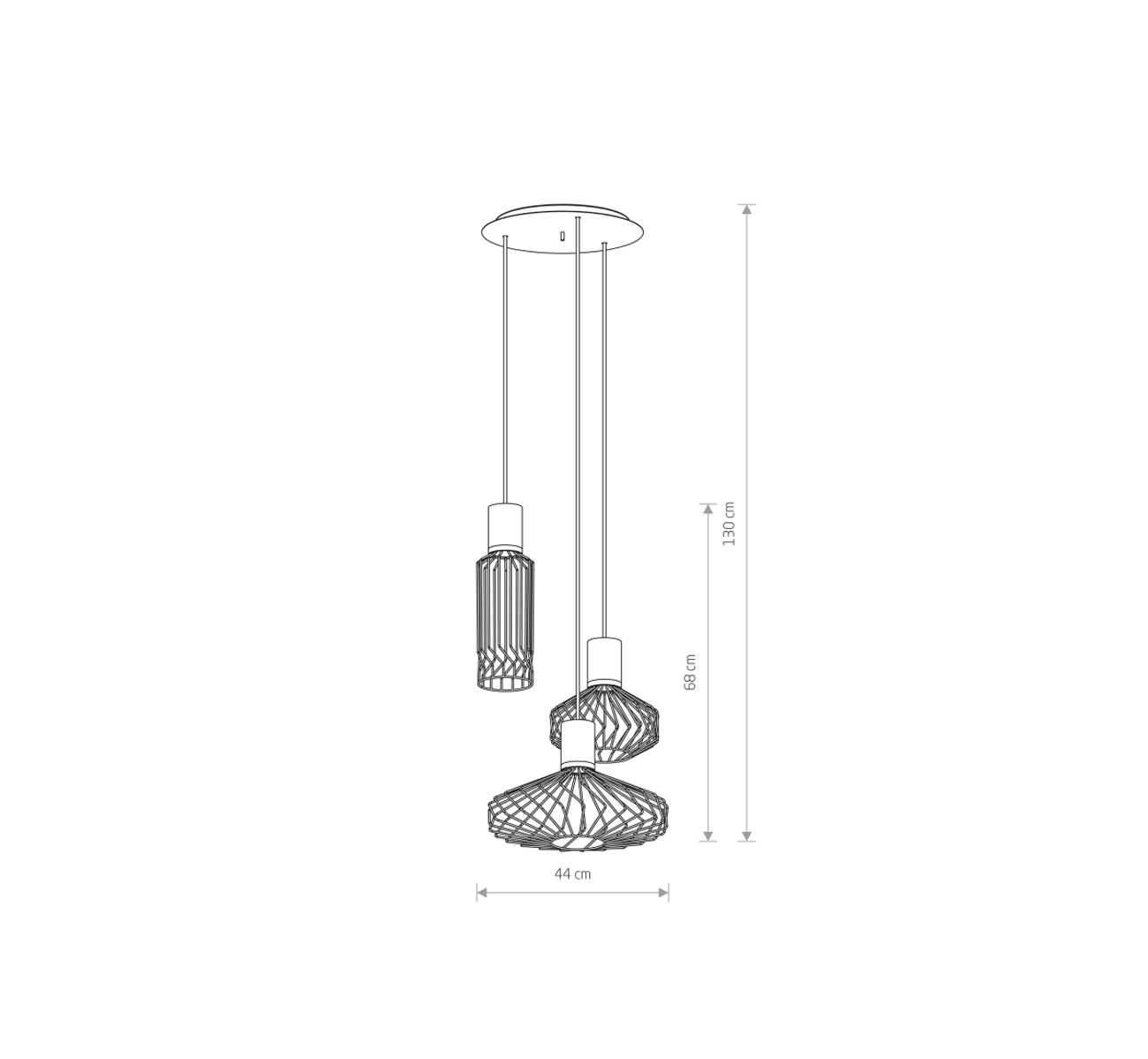 Composé d’un plafonnier rond, de trois plafonniers suspendus (disque, cylindre et diamant). La facette de la suspension est une merveilleuse façon de montrer facilement votre style moderne. Cette suspension apporte un charme nostalgique intrigant à votre salle à manger, votre cuisine et tous les espaces. Combinez avec le reste de la série « Pico » pour un résultat spectaculaire.