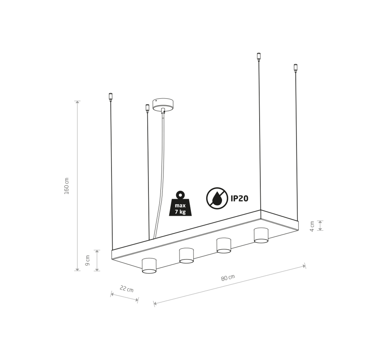 Hauteur max : 160 cm