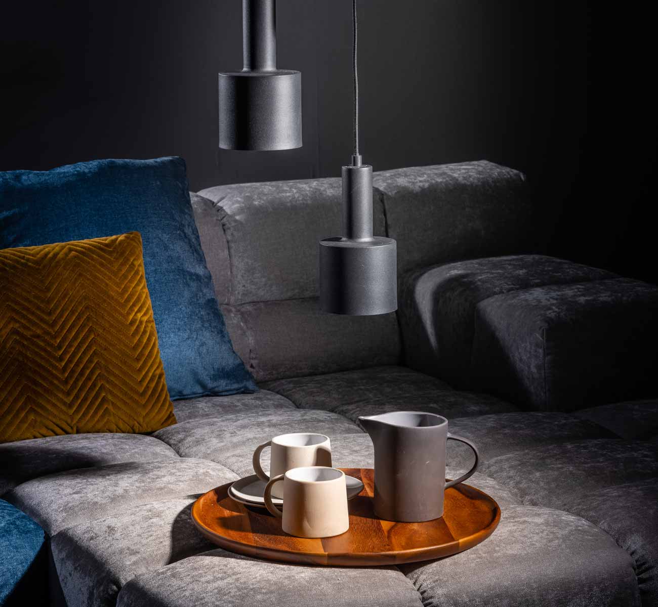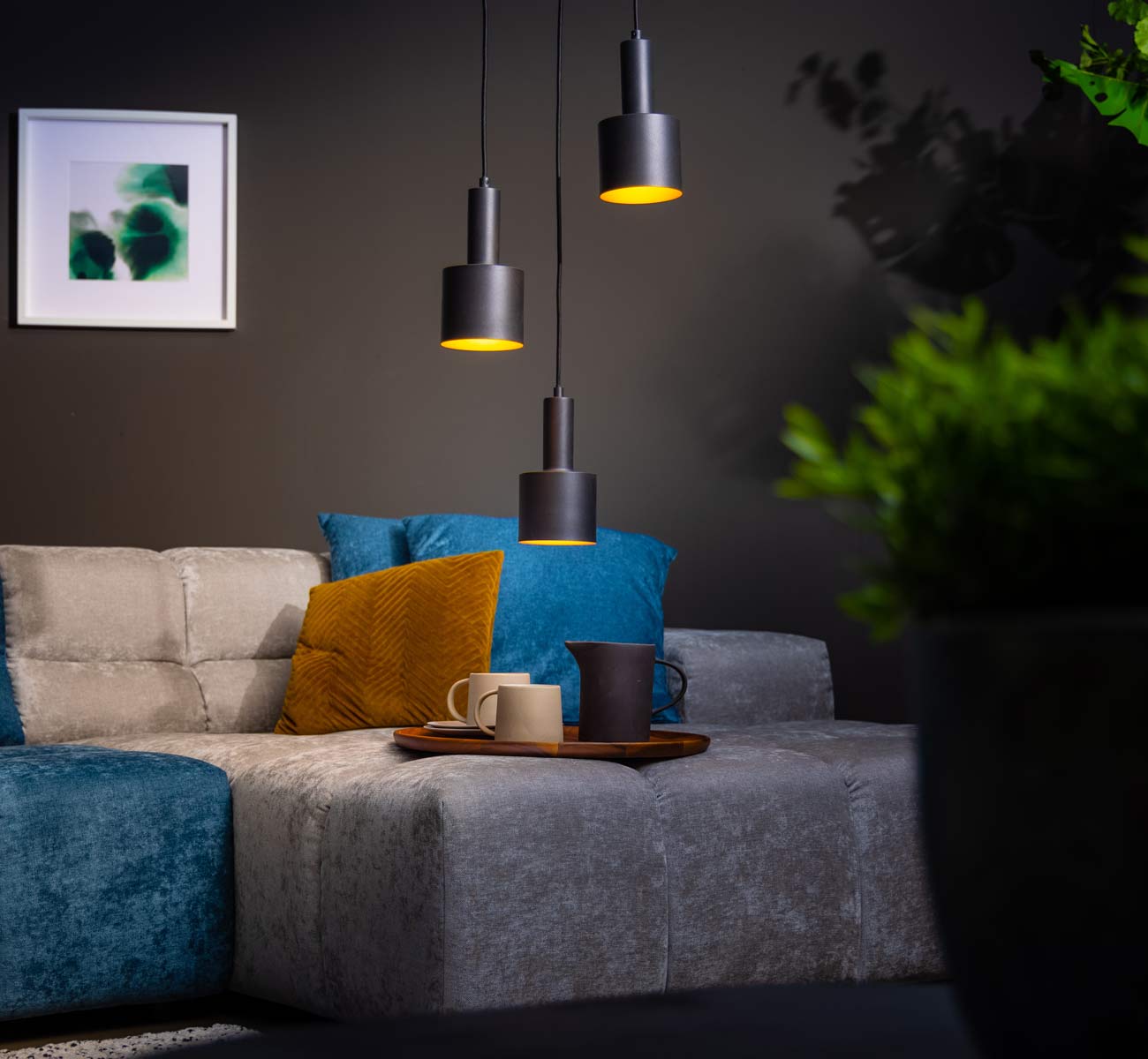 Un joli détail est l’intérieur doré des abat-jours compacts, qui crée une atmosphère et un effet ludique.