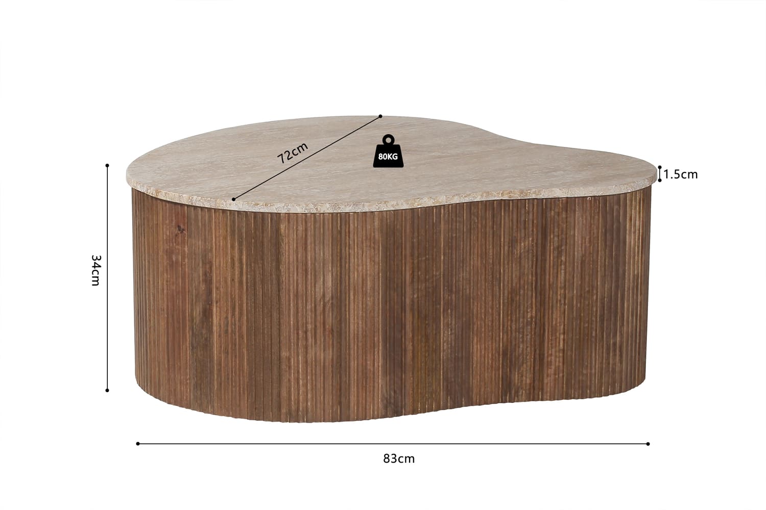 Le contraste entre la base en bois naturel et le plateau en pierre crée un équilibre visuel harmonieux, avec une touche organique qui réchauffe l’ambiance de votre salon.