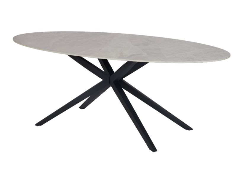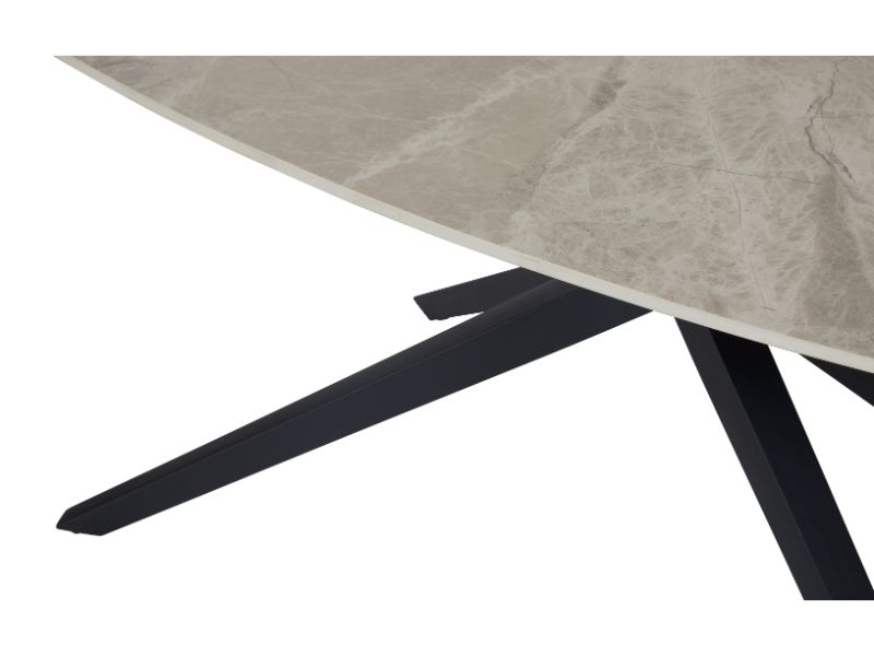 Le piétement en métal noir, en forme d’étoile, apporte une touche de légèreté et d’originalité à cette table.