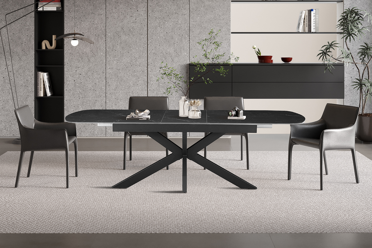 Matériaux : Plateau en Sintered Stone – Structure métal noir poudré