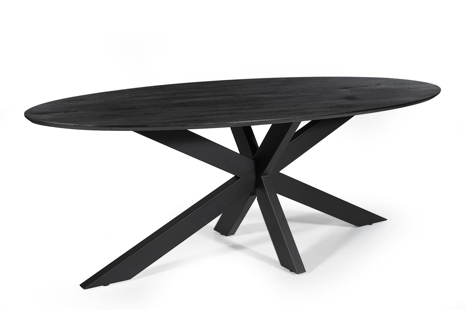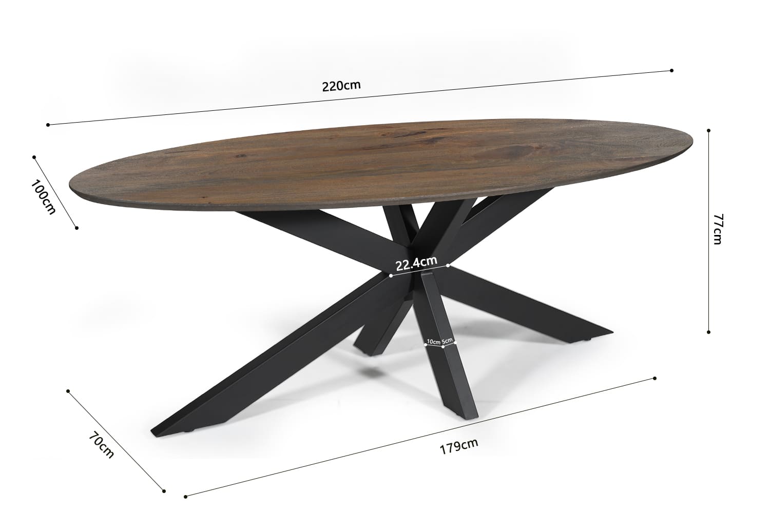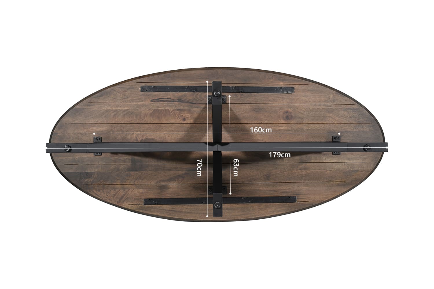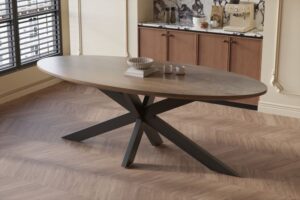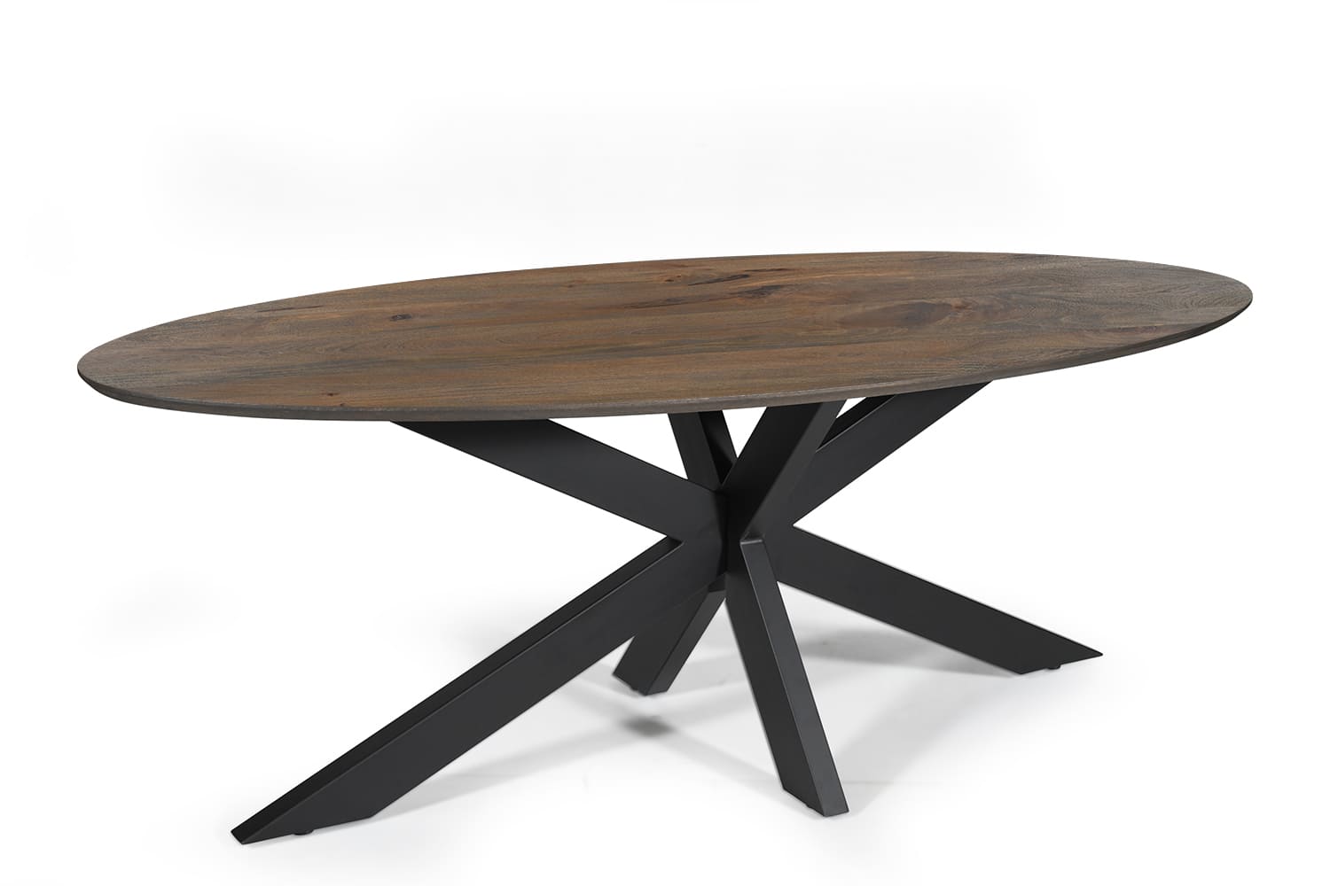 Le modèle avec un plateau ovale en bois exotique mangolia d’une longueur